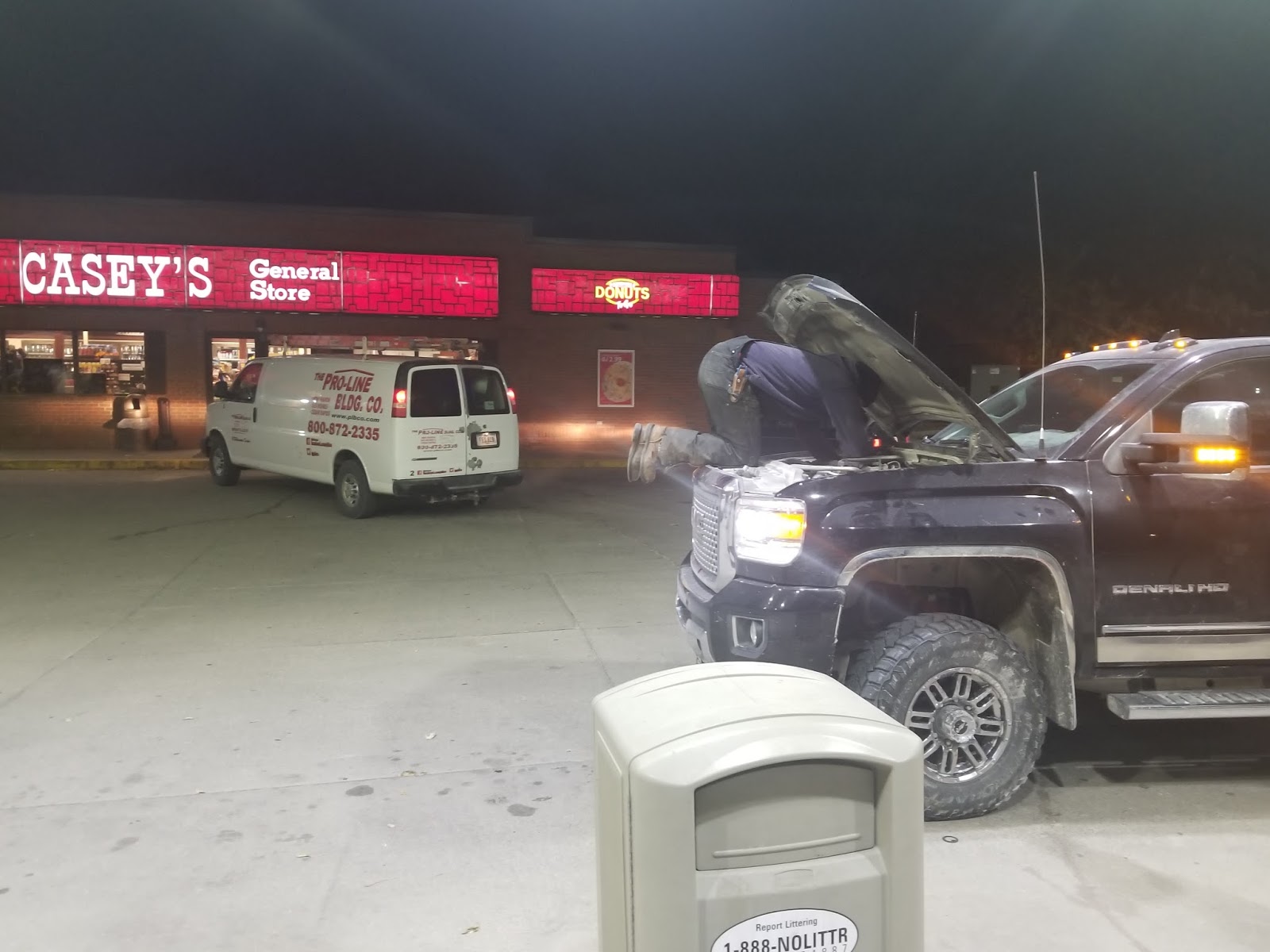 Friday morning has been our chilliest morning so far. Around 5:45 I received a call from Andy that my pickup had died at Casey's in New Sharon. After helping him try all the correct ways of getting it started like recycling the ignition a bunch and removing and replacing the battery cables we finally just went with the old reliable way and used a can of either. I'm not sure why it decided to be contrary unless it was actually cold enough to jell diesel fuel.
